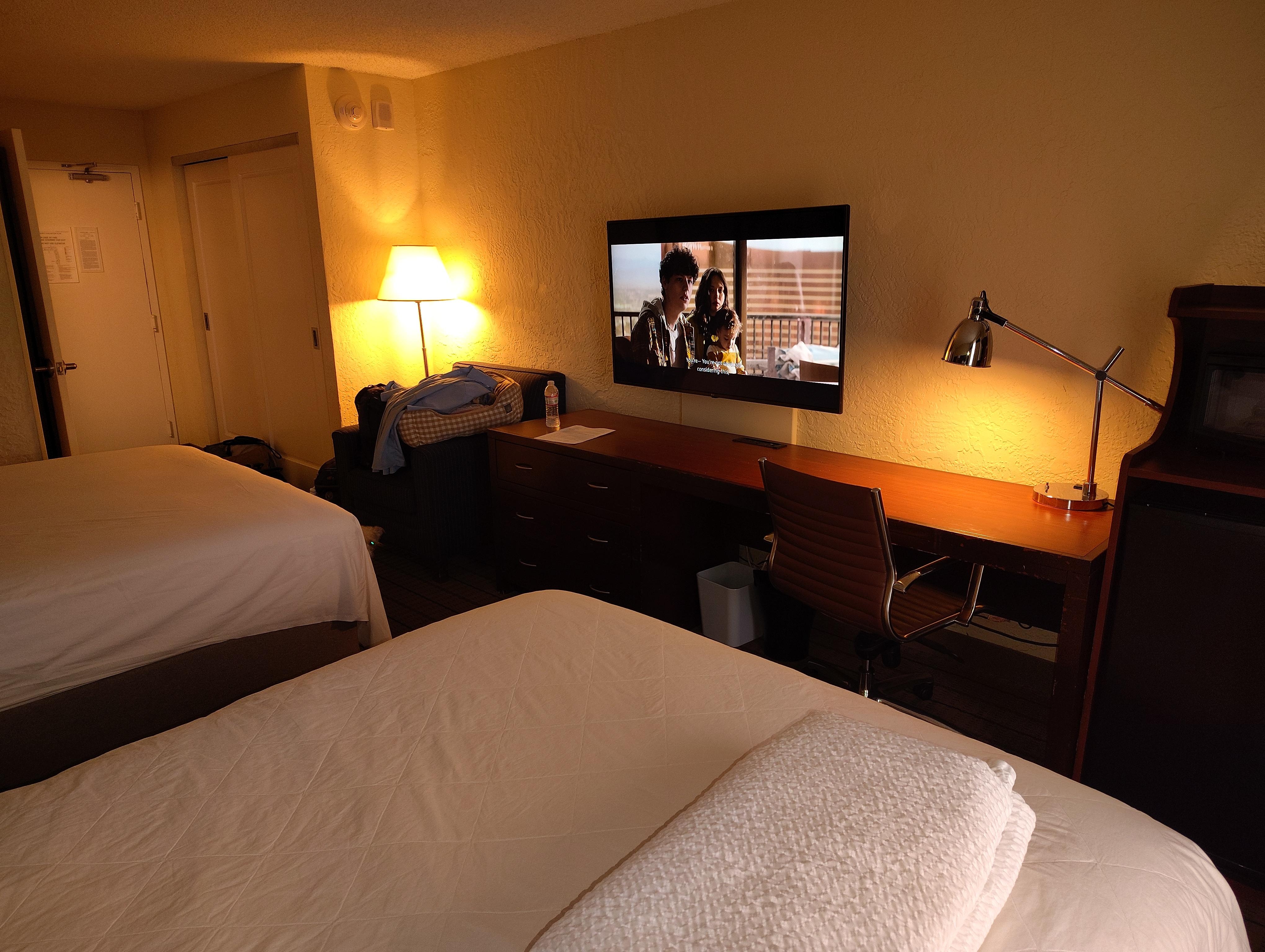 Beautiful pool, good size, Jacuzzi, fast check in, no charge for service animals, easy coffee service from 6am-11am. Rooms facing west get very hot on hot days, recommend South or east facing rooms. Ground floor rooms with patios offer greater privacy and easy access to lobby and pool.