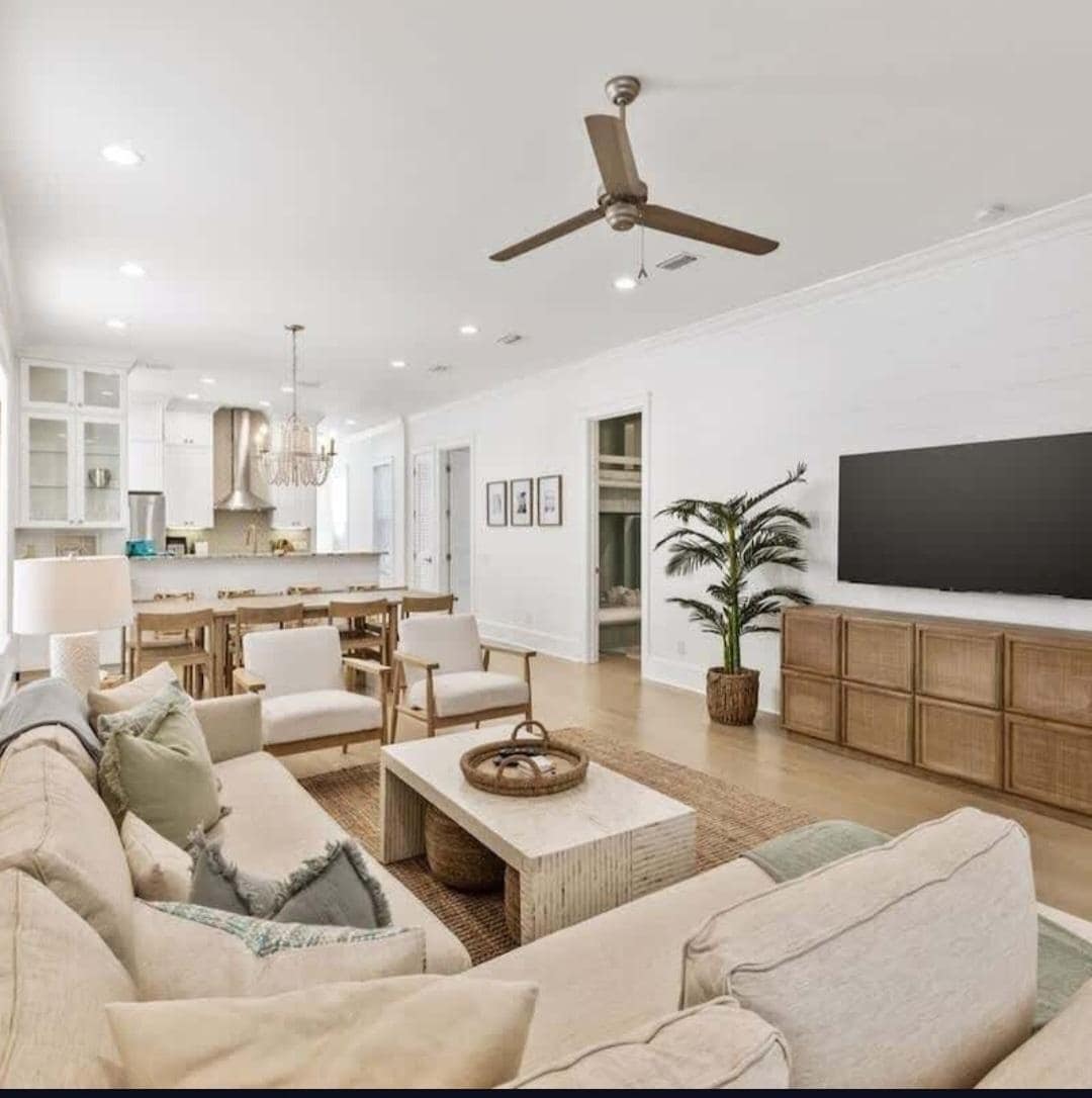 Seaplane Cottage is the beach getaway home you've been searching for, centrally located along 30A in a quaint, gated neighborhood in the heart of Seagrove! This adorable beach cottage offers the perfect blend of modern living and natural beauty, situated right against Port Washington State Forest for ultimate privacy and serenity! Just a short stroll to beach accesses and a quick bike ride to Seaside, Watercolor and the Big Chill. This home is conveniently all on one level making it ideal for families! Enjoy the stylish open-concept kitchen, dining table for 8 and spacious living room, creating the perfect gathering spot! You're greeted by the morning sun on the covered front porch and can wind down after a day at the beach on the screened-in back patio overlooking the forest. 3 beautiful en-suite bedrooms ensure comfort and privacy for each guest. 4 bikes are included to enjoy scenic 30A!