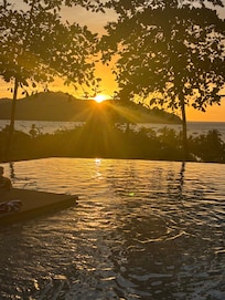 This property features an outdoor pool, as well as a private pool and a living room.