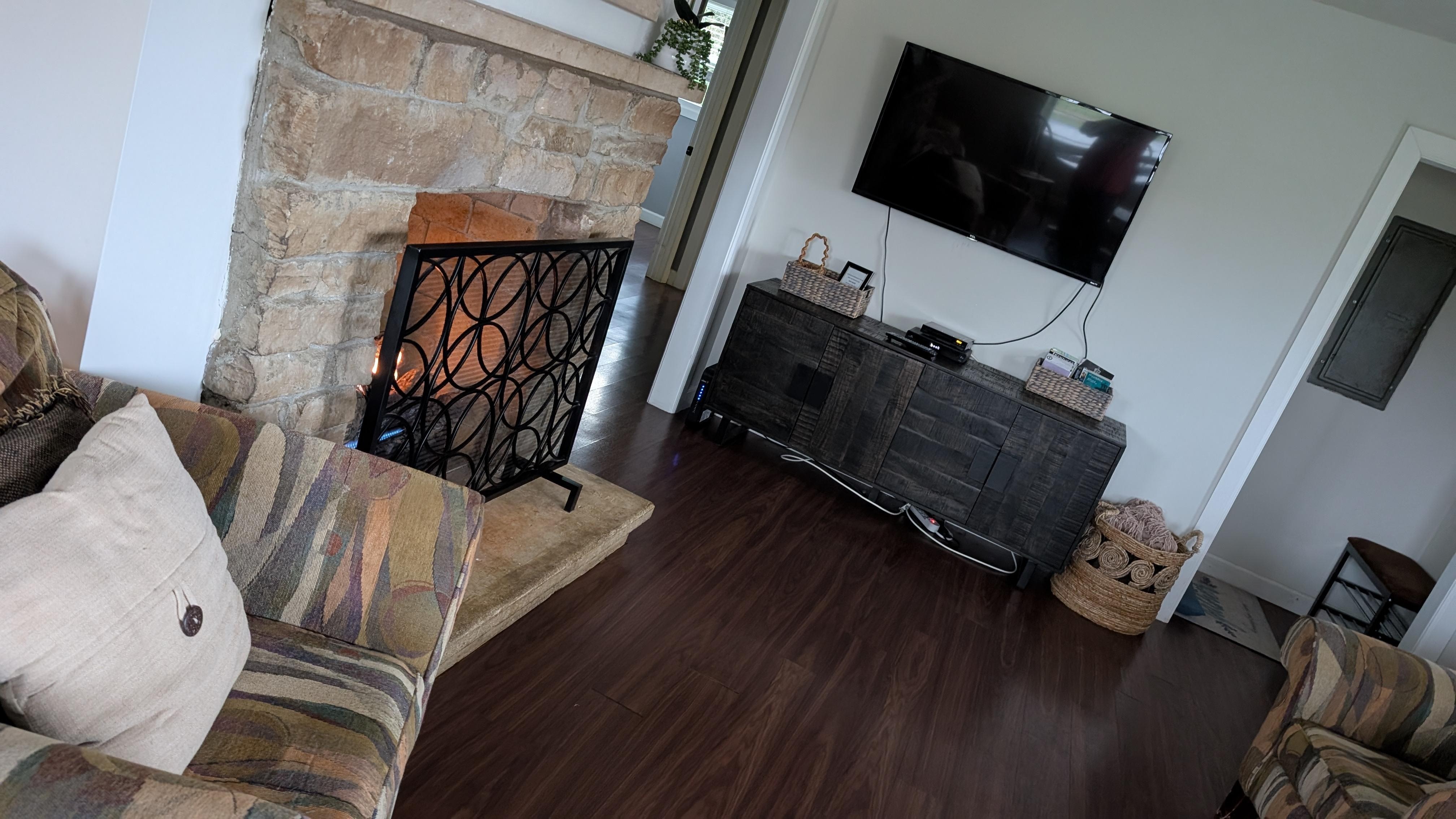 Smart TV, fireplace, DVD player