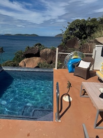 This property features an outdoor pool, as well as a private pool and a living room.