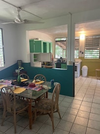 The house is exotic and bohemian-- very fun! It's very spacious, and is on grounds that are also amply big. It's well-equipped, including with sweet cats, roosters, hens and chicks that live outside. You get a true Vieques experience here. And the location is perfect! It's walking distance to many restaurants and to the promenade along the water, and very short drives to all the great beaches on the south side of the island. We found that we could use fans to stay cool, and loved the comfy sitting room. The shower is great, and wifi works very well.April was a very responsive and helpful host. We'd certainly recommend her place to others!