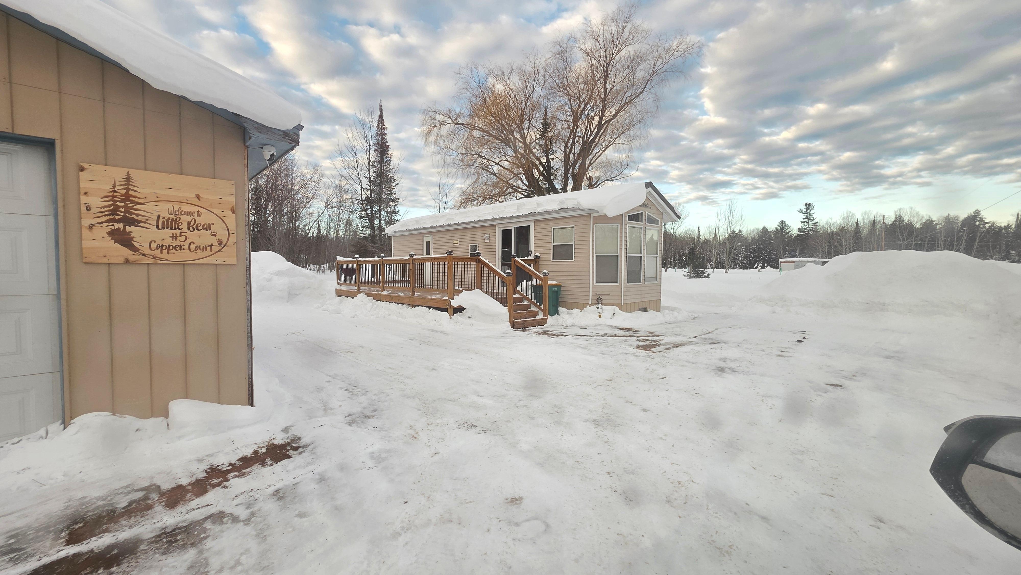 Hello & Welcome to Little Bear! Our cozy tiny home is located in a quiet area just minutes from Lake Superior & many UTV/ATV/Snowmobile Trails. The Porcupine Mountains Wilderness State Park and Lake of The Clouds are just a 20 minute drive away. This little getaway has free WIFI, a bedroom w/a short queen bed & 2 twin size sofa sleepers in the living area, bathroom w/tub shower combo & toilet. Home is supplied with linens, towels, pots/pans & kitchenware (plates, bowels,etc). Essentially just bring your own shampoo etc.., food, condiments, coffee, BBQ Supplies & you are all set! Living room (which also turns into a 2nd bedroom) has a TV w/ an Amazon Fire Stick. Outdoor space is just over a acre & includes parking for 2/3 vehicles, fire ring & a spacious deck w/ a charcoal grill & table w/chairs. The owners also own the 9 acres right next to the property. So plenty of room for all your trucks & trailers. Our little village has a small mall with a few stores with a few gift shops, salon & the Yooper Diner. The Legion which is open to the public, just a short distance away along with the Koteka Restaurant & Bar which has a small convenience store with gas and offsale. Whether you are visiting our area for the fall colors, chasing the Northern Lights (which you can see right from the deck), rock hunting on Lake Superior's shores for Agates or Upper Lites, fishing or here to ride, Little Bear is just the spot for you!