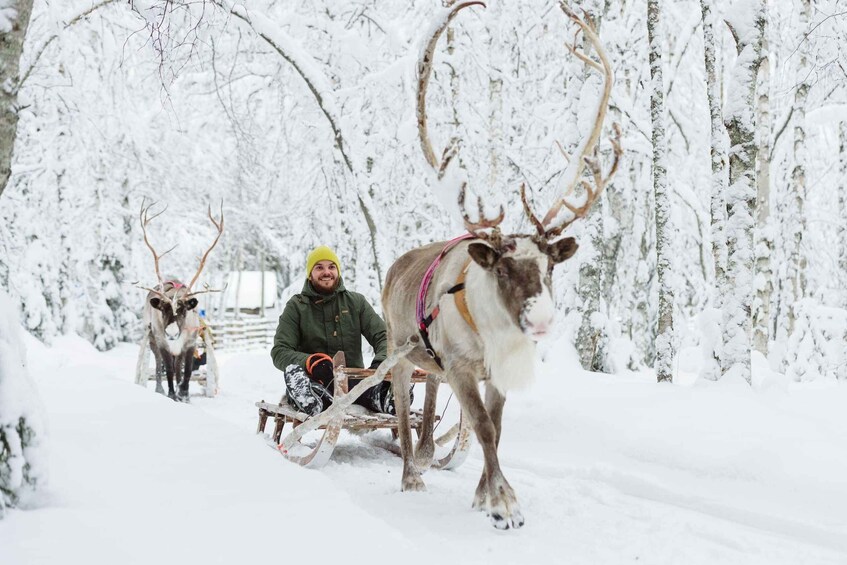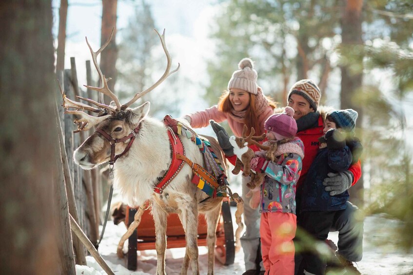 Experience the captivating world of Lapland as you embark on a once-in-a-lifetime journey from your hotel in Rovaniemi to a traditional reindeer farm. Go deep into the heart of the Arctic wilderness, to connect with indigenous culture, interact with gentle reindeer, and ride through the snow.
