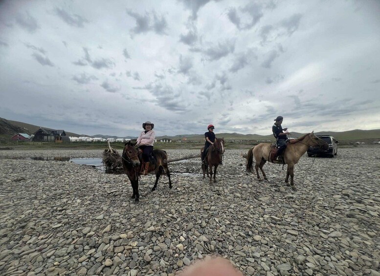 After breakfast, visit a nomad family to see how they live. Horse riding for 40 minut to 1 hour. Enjoy lunch at a local camp or family ger. Visit Turtle Rock and the Aryabal Meditation Temple before heading back to Ulaanbaatar.