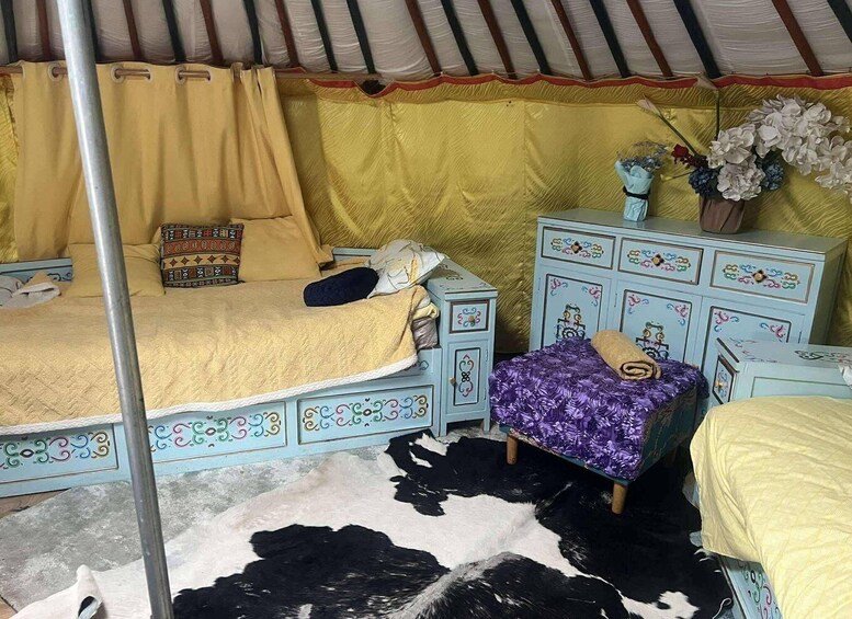 In the afternoon, drive to Terelj National Park, stopping at the Genghis Khan Equestrian Statue Complex for panoramic winter views. Continue to Terelj National Park and discover the true luxury of organic living at the Farm Green House. Enjoy meals made with organic vegetables grown in their own greenhouse and spend the night in a heated ger.